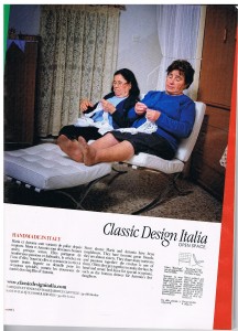 Volvía yo de mis vacaciones en el Algarbe, en uno de esos vuelos baratos cuya compañía no voy a nombrar cuando cual fué mi sorpresa al descubrir que entre las páginas de la revista de esta compañía aparecen dos tiernas abuelitas haciendo ganchillo plácidamente. Me chocó porque estas revistas de viajes suelen recoger temas de mucho glamour y muy chics. Con eso de que soy del gremio, me paro en la página y leo con mas atención la letra pequeña, era un anuncio y descubro que lo que venden es la silla en la que trabajan las señoras mientras apoyan sus pies en un reposapies de diseño.