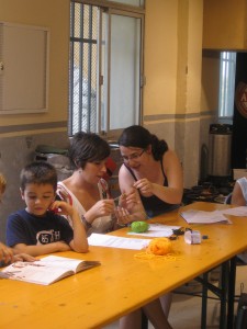 Lo pasamos de maravilla y fué muy divertido que grandes y pequeños compartiran aprendizajes y «rabietas» (El anillo mágico es de lo más complicado), lástima que hizo mucho calor y no pudimos hacerlo al aire libre.