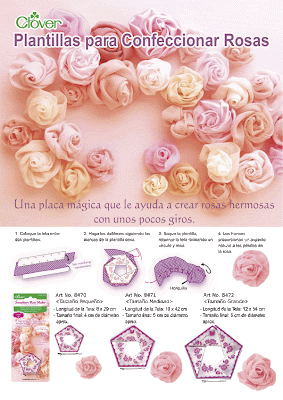 La marca japonesa Clover ha ideado este sistema para crear rosas personalizadas de tela. La plantilla se fabrica en tres tamaños 4, 5 y 6 cm de diámetro aprox. pero en Mercería El siglo solo está disponible de momento la más grande.