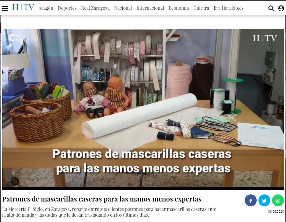 El pasado 6 de junio, Heraldo TV de la mano de, nuestra ya amiga, María se hizo eco de mi reparto de patrones para hacer mascarillas 😁